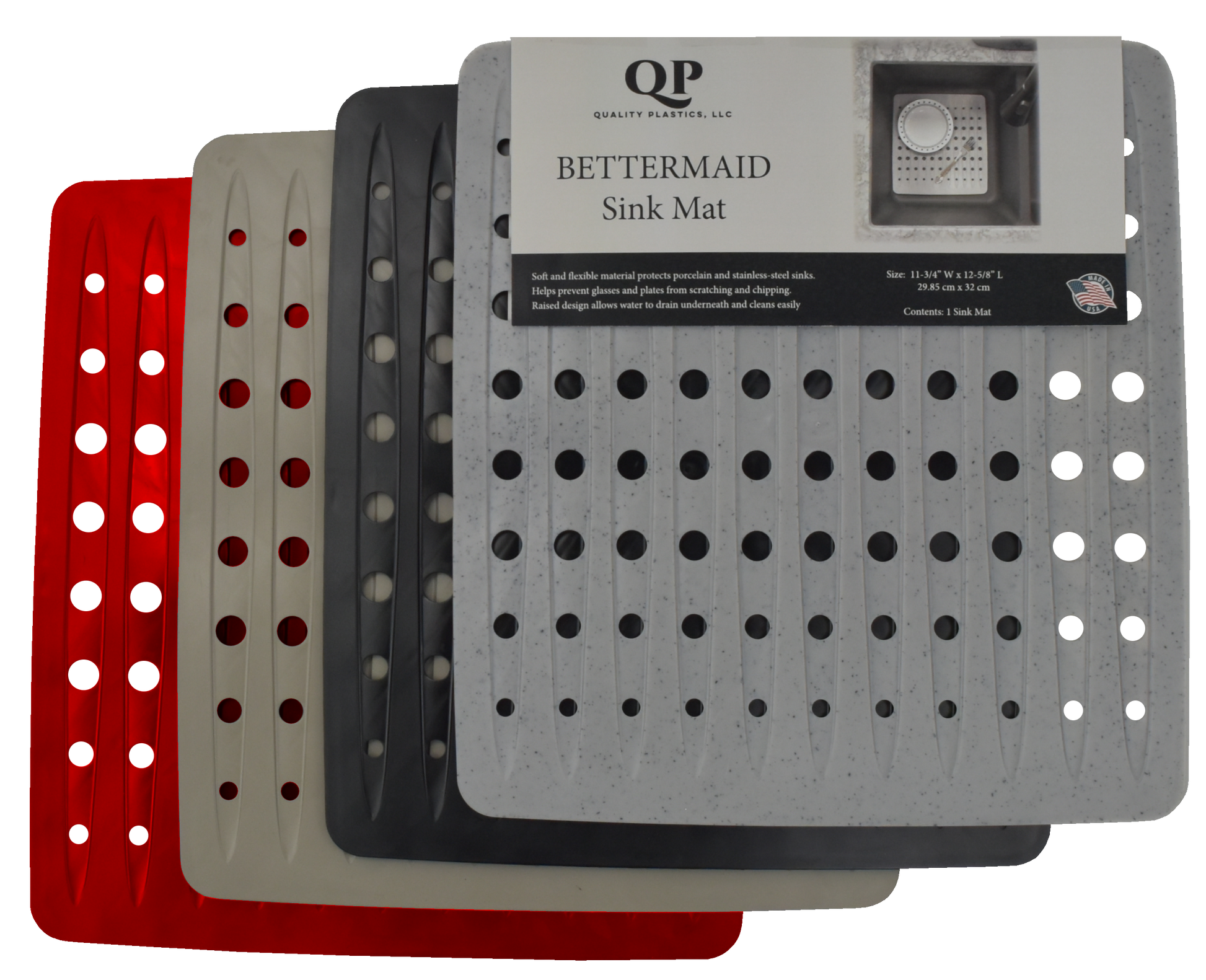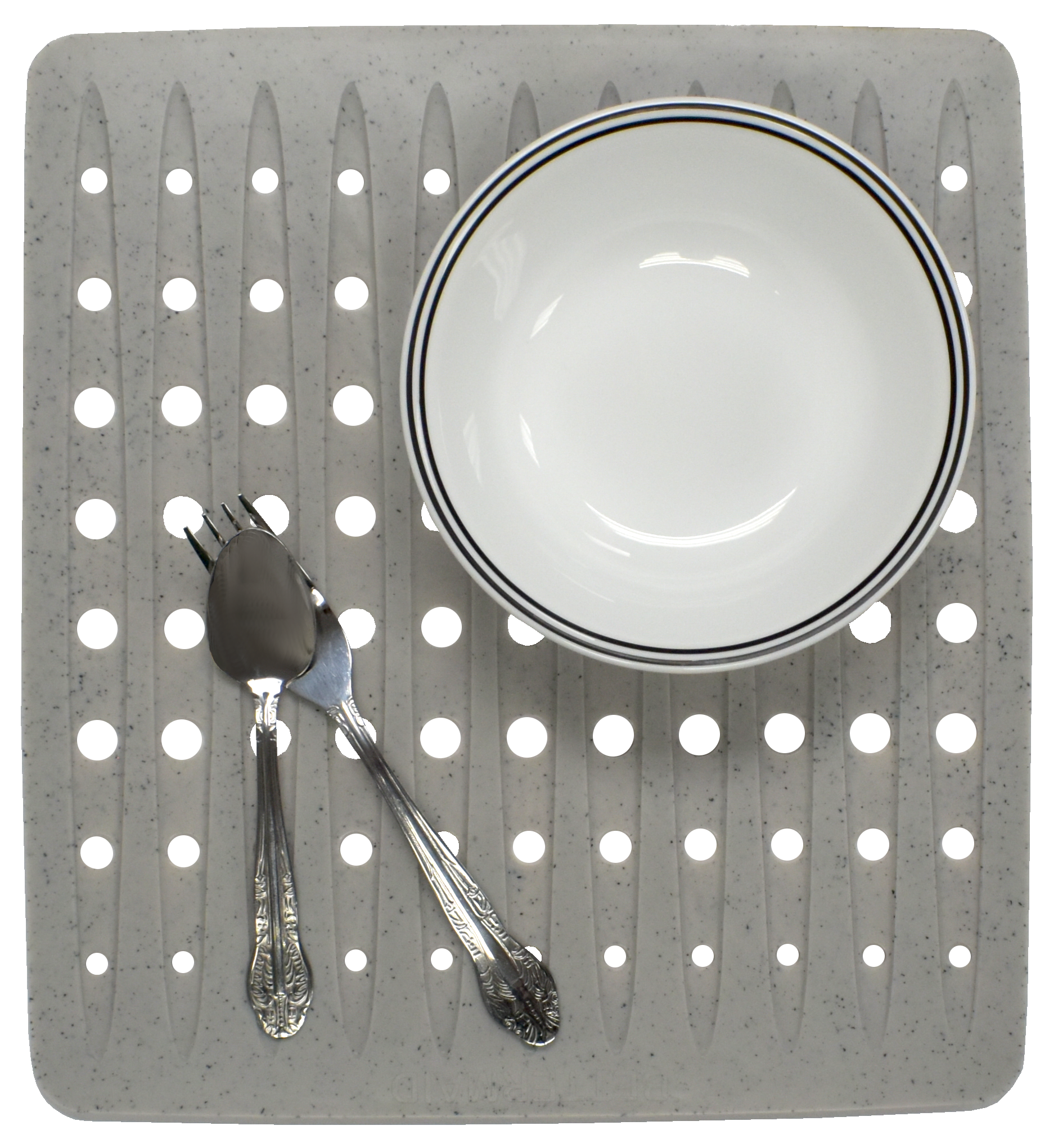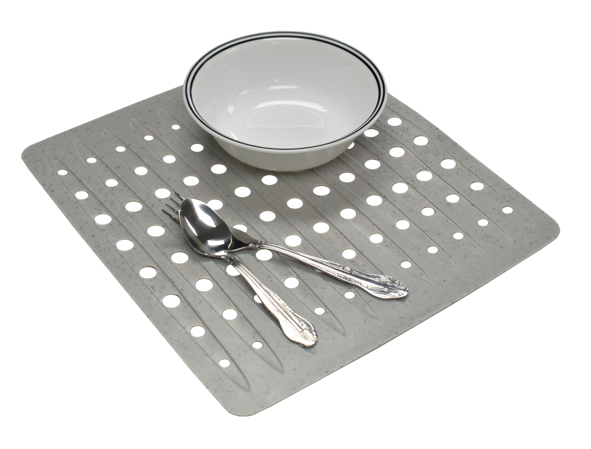 Soft and flexible material protects porcelain and stainless-steel sinks.  Helps prevent glasses and plates from scratching and chipping.  Raised design allows water to drain underneath.  12-5/8”L x 11-3/4”W x 3/8” Thick